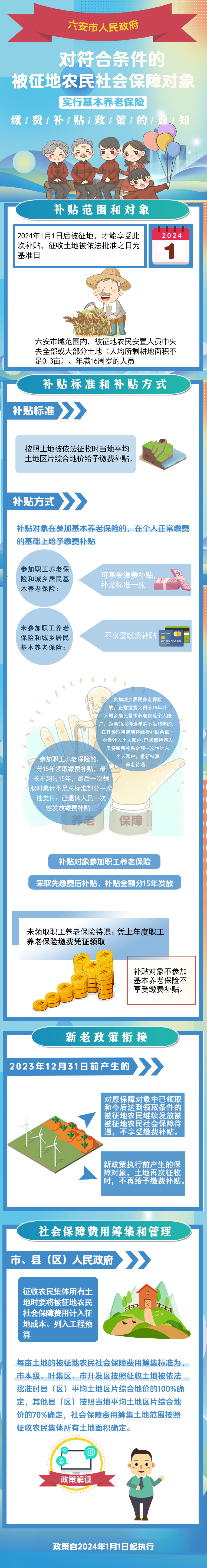 【图片解读】六安市人民政府关于对符合条件的被征地农民社会保障对象实行基本养老保险缴费补贴政策的通知