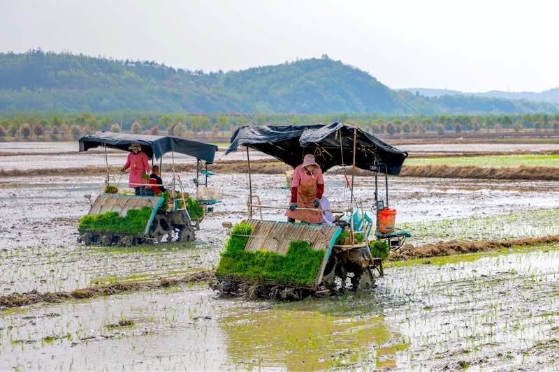 4月17日,裕安区石板冲乡赵湾村的高标准农田里,插秧机来回穿梭,一行行嫩绿的再生稻秧苗整齐地扎根田间。据悉,该村今年将完成800多亩再生稻的播种。